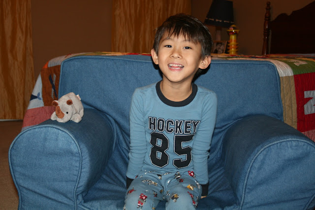The little beanie baby next to him in the above picture has a story to go with it. All of his life, Rocco has never had a stuffed animal. I'm very allergic to them so we can't have them in the house. As we were cleaning out and organizing our rooms for the baby boy, Rocco found some old beanie babies that I had collected. He began playing with them...and even sleeping with them. Most boys in kindergarten may be over small toy animals, but to Rocco this type of toy is pretty new to him. His favorite one is Rhino.